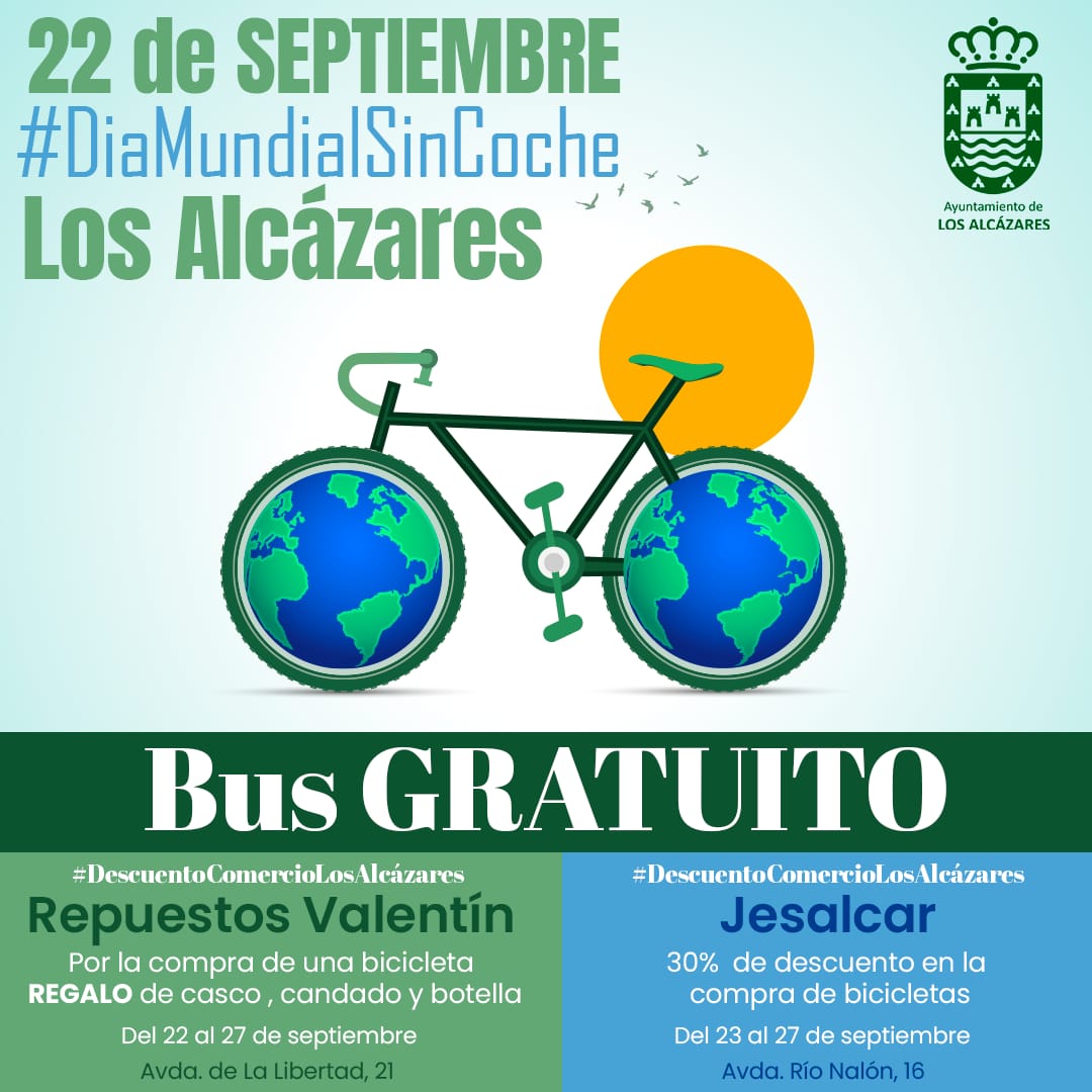Con motivo del Día Mundial Sin Coche, que se celebra el lunes 22 de septiembre, el Ayuntamiento de Los Alcázares ofrecerá durante toda la jornada el servicio de autobús urbano de forma gratuita, con el objetivo de incentivar el uso del transporte público y reducir el uso del vehículo privado.